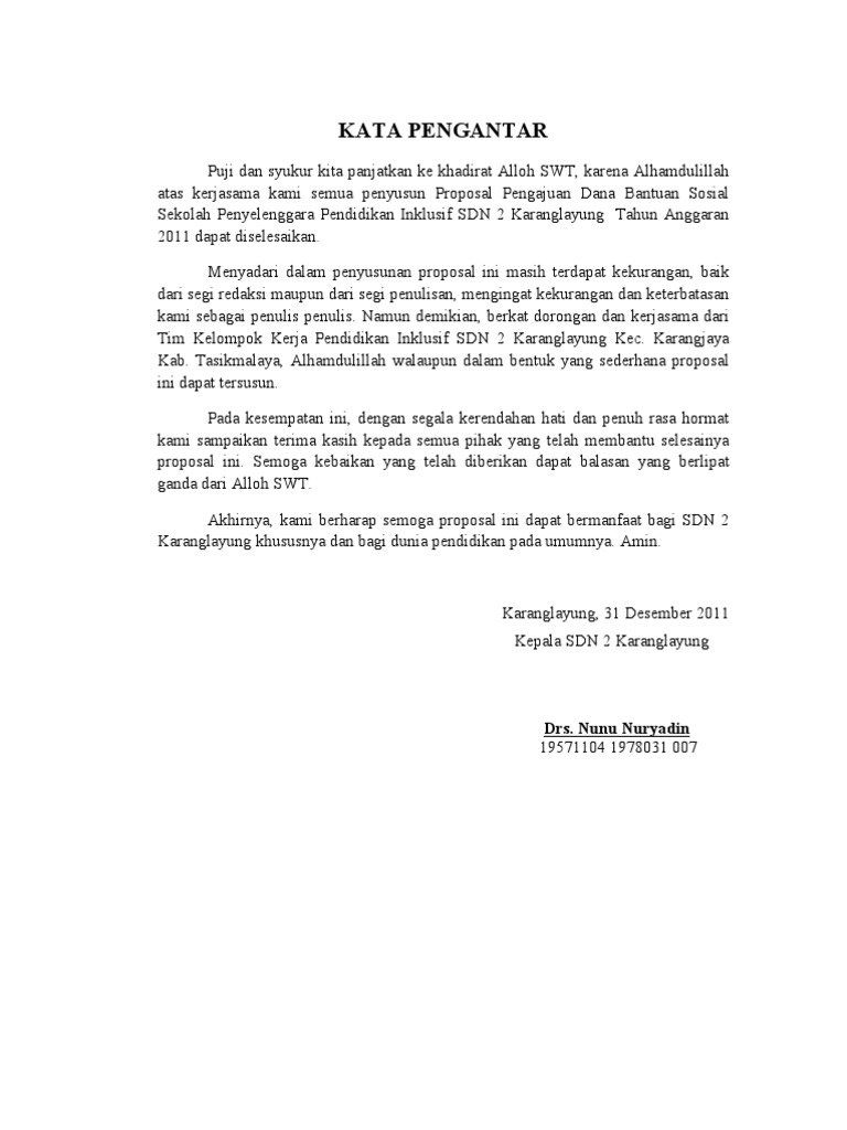 Proposal Mebelair from imgv2-1-f.scribdassets.com Memberikan ucapan rasa syukur dan terima. Mungkin diantara kalian ada yang tahu tidak tentang apa itu kata pengantar? Lebih detailnya contoh kata pengantar yang baik itu adalah kata pengantar yang isinya mencakup dari rangkuman bab yang telah kita sampaikan baik itu makalah maupun karyatulis. Kata pengantar adalah faktor penting sama halnya dengan daftar isi, daftar pustaka dan lainnya. Ketika kamu menyusun laporan, makalah, atau skripsi maka perlu ada kata pengantar sebagai salah satu bagian pelengkap susunan sebuah karya. Pada umumnya kata pengantar biasa digunakan dalam membuat sebuah proposal, skripsi, laporan, dan bahkan dalam pembuatan surat. Contoh kata pengantar laporan, baik laporan praktek lapangan kerja, study tour, atau 1. Oleh yoga winandodiposting pada 18 januari 202118 januari 2021.